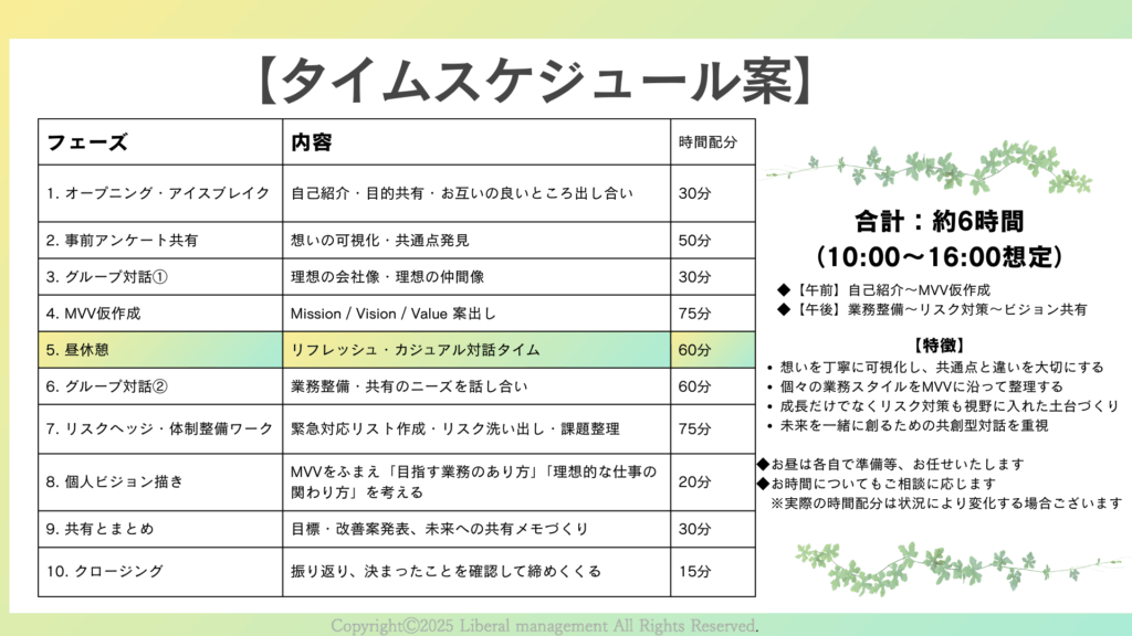 今こそ会社・組織の**“自己信頼”**を取り戻し、本音からMVVを再設計することが未来への成長・採用・定着のカギです。