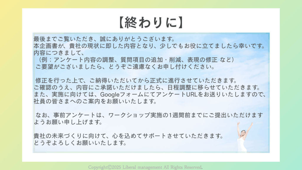 - 事前ヒアリング・オンライン/対面いずれも対応・カスタマイズ設計可